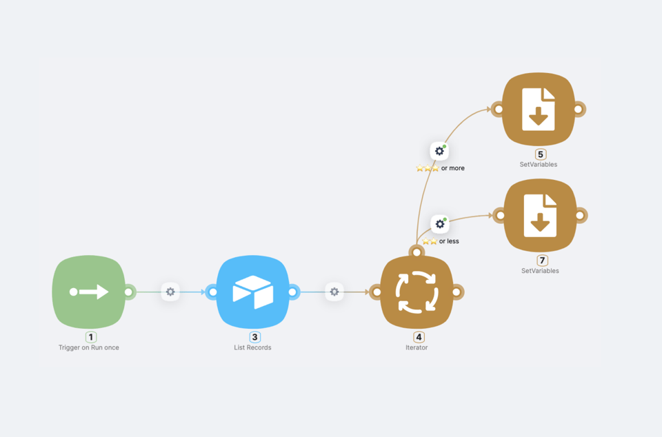 Every process begins with an event triggering it. This could be any data change, such as a status update in CRM, receiving an email, filling out a new form on a website, etc.